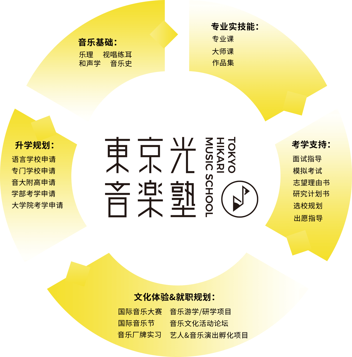 升学规划 → 音乐基础 → 专业实技→ 考学支持 → 文化体验&就职规划